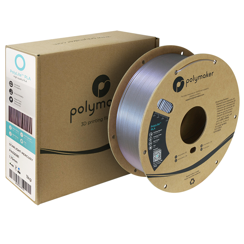 PolyLite PLA Starlight Mercury van Polymaker is eenvoudig in gebruik, betrouwbaar en betaalbaar – ideaal voor het maken van artistieke objecten met galactische tinten. Geniet van de prachtige lichtreflecties die over je prints dansen.