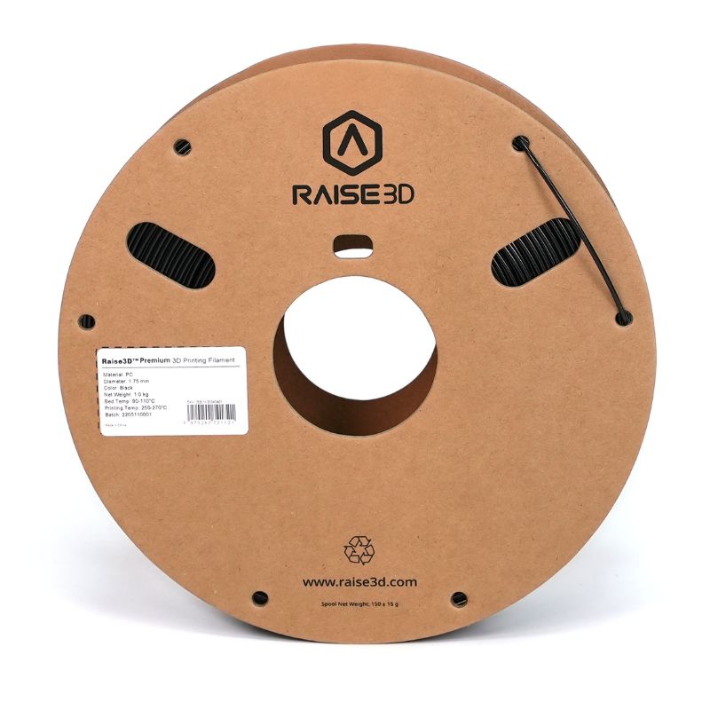 Professioneel: het Raise3D Premium PC Zwart filament is een professioneel kwaliteitsfilament ontwikkeld door een van de toonaangevende merken: Raise3D.