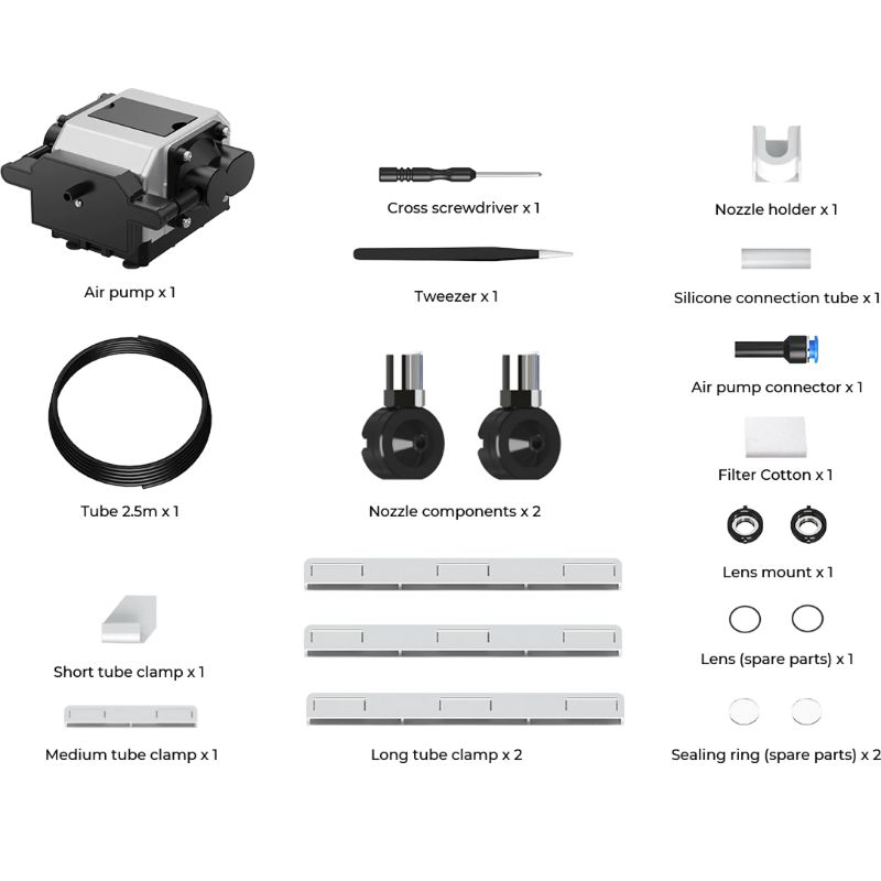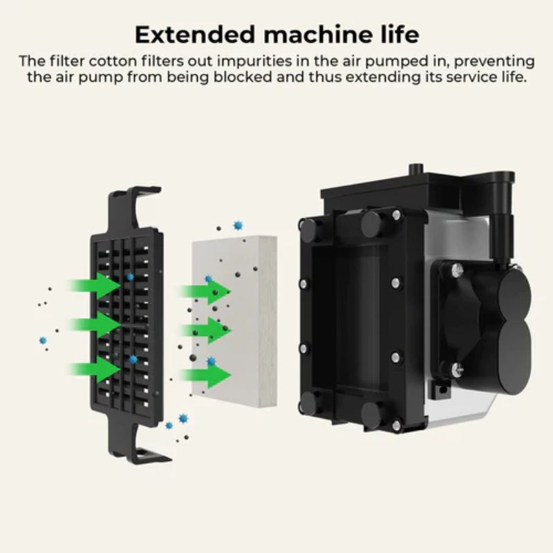 Eenvoudig te installeren en stil in gebruik, beschermt het ook de laserlens voor een langere levensduur van je machine.