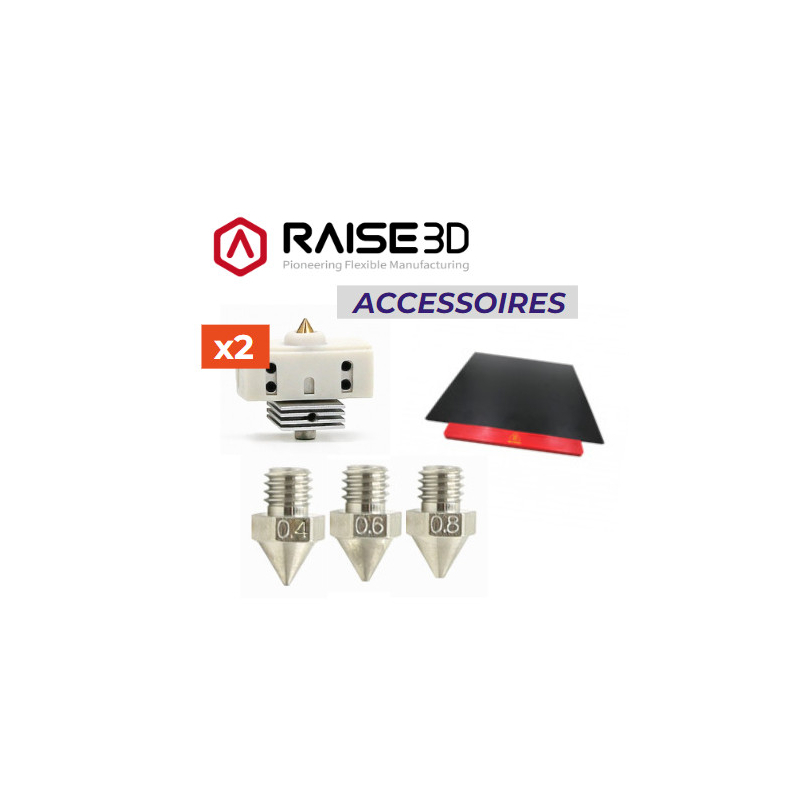 Een pakket met accessoires om uw Raise3D Pro2 of Pro2 Plus printer te onderhouden. Twee nieuwe hotends, een lade en een set stalen spuitmondjes V3H om uw printer weer aan de gang te krijgen.