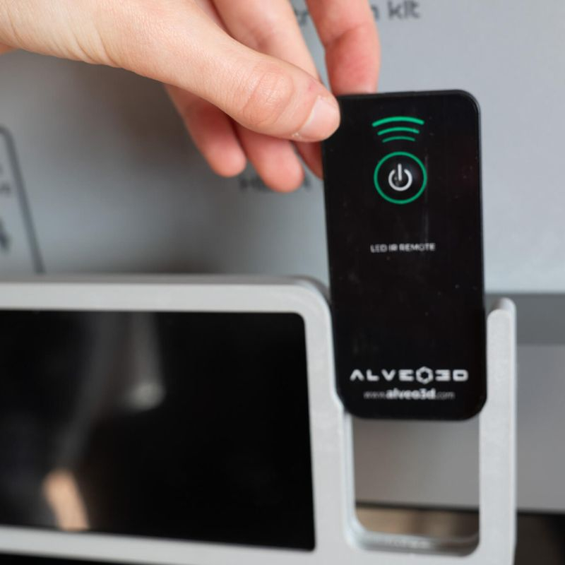Dankzij de meegeleverde afstandsbediening kan het systeem worden in- of uitgeschakeld zonder het printproces te onderbreken. Het wordt aanbevolen de kit gedurende de volledige print en enkele minuten na het afkoelen van het printbed te laten werken.
