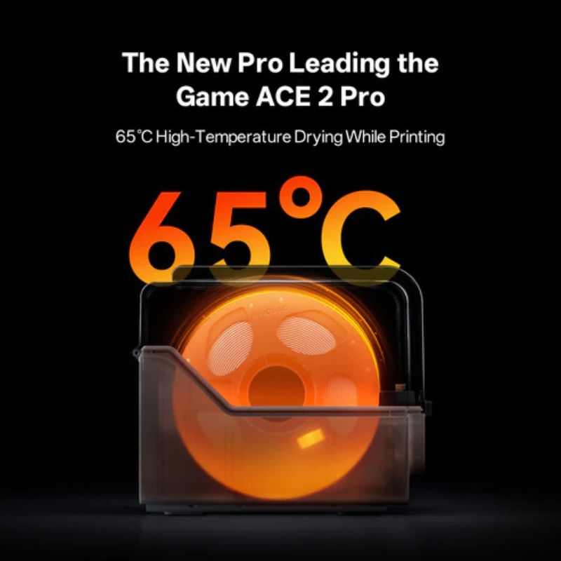 De ACE 2 Pro zorgt voor continue filamentdroging bij 65 °C met vochtigheidsdetectie, waardoor de consistentie van de extrusie verbetert en defecten zoals bellen of onderextrusie worden verminderd.