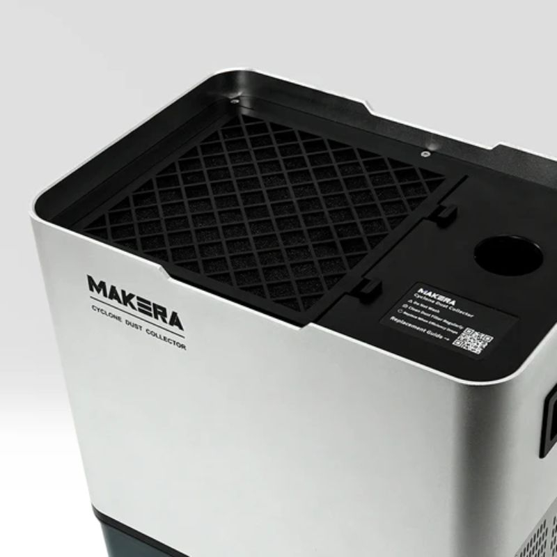 De Makera Cyclone Dust Collector is ontwikkeld voor compacte bewerkingsomgevingen zoals werkplaatsen of fablabs uitgerust met Makera Carvera / Carvera Air machines. Het combineert cyclonische scheidingstechnologie met een meertraps filtratiesysteem om spanen en fijnstof efficiënt te verwijderen tijdens frezen, graveren of snijden.