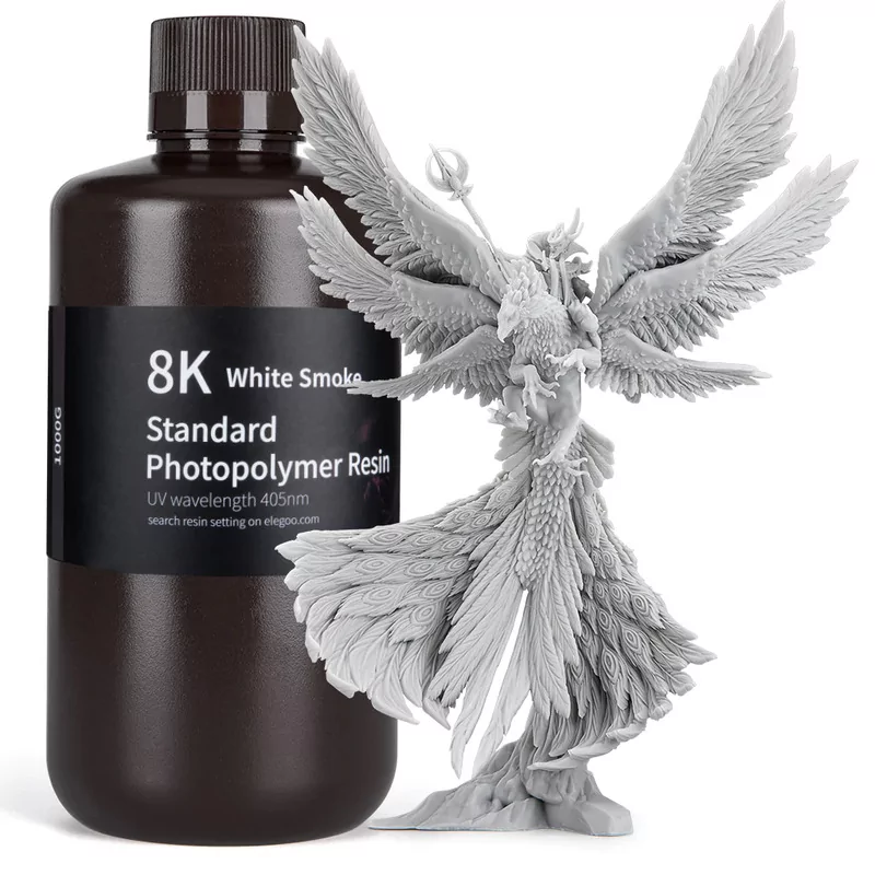 De harsfotopolymeer Elegoo Standard 8K White Smoky garandeert een ongelooflijk glad oppervlak en een uitzonderlijke nauwkeurigheid van details in vergelijking met conventionele standaardharsen.