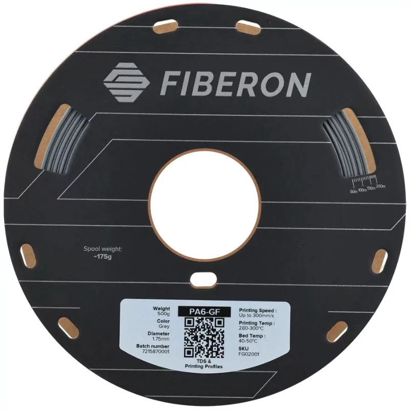 De Polymaker Fiberon™ PA6-GF25 is een versterkte nylon PA6 filament. Het is een sterk en technisch materiaal dat is ontworpen voor industriële toepassingen. Dankzij de glasvezelversterking biedt het uitzonderlijke stevigheid en een hoge hittebestendigheid (191°C).