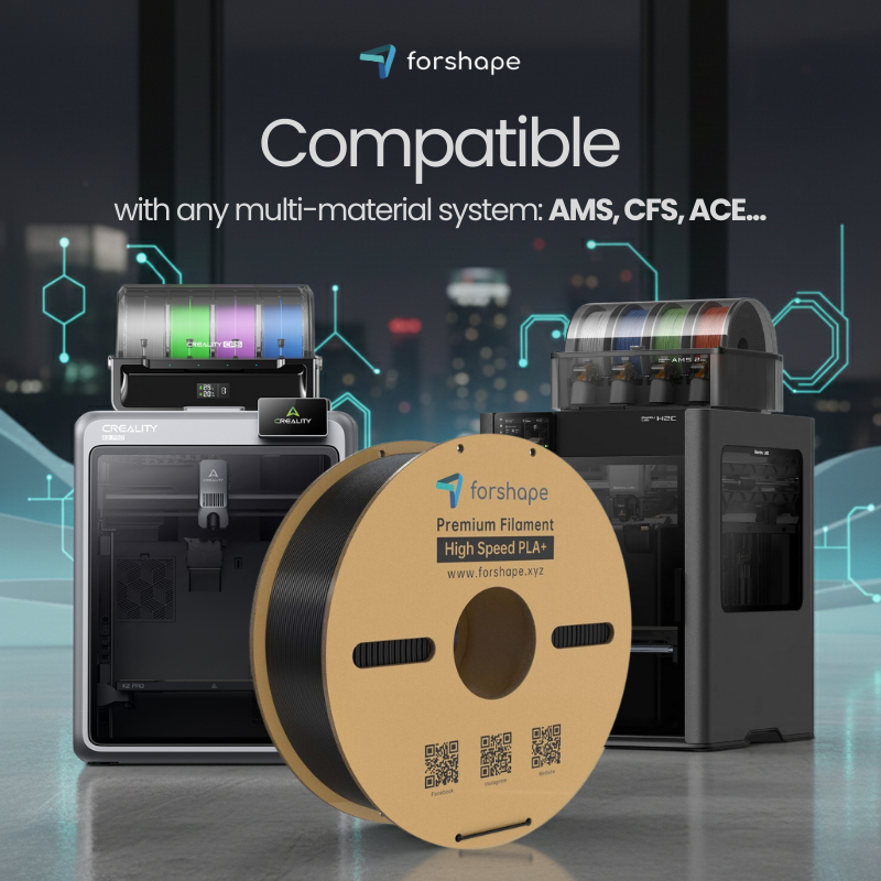 Het High-Speed PLA+ Forshape Premium filament is compatibel met multi-materiaal systemen AMS, CFS, ACE...