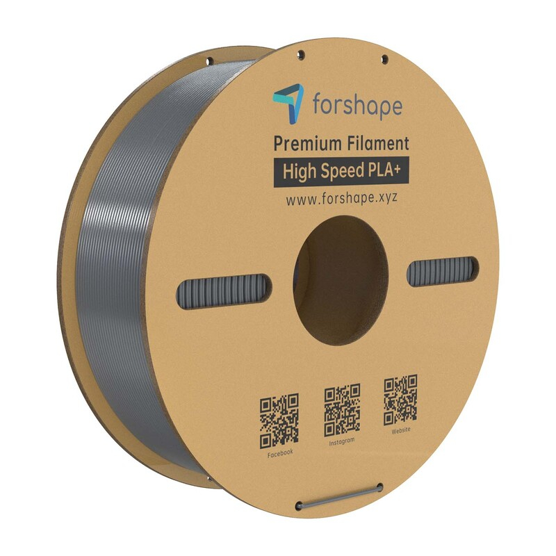 Het High-Speed PLA+ Forshape Zilver filament (hoge-snelheid PLA) maakt prints mogelijk met snelheden tot 600 mm/s dankzij de unieke formulering die hoge vloei en snelle koeling combineert.