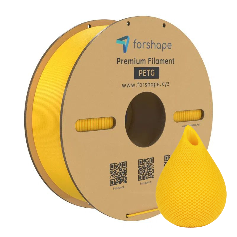 PETG Geel 1.75mm is een solide, hydrofoob, translucent filament zonder geur. PETG Geel is een premium PET-filament met hoge slagvastheid en goede maatvastheid. Dit Forshape PETG Geel 1.75mm filament combineert de voordelen van PLA en ABS.