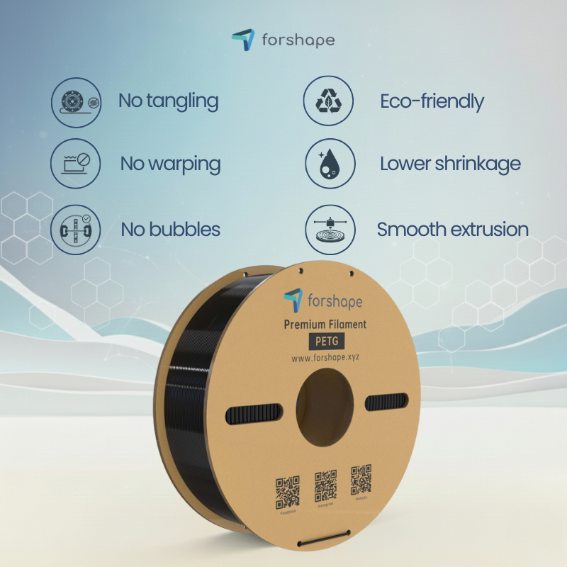 Translucent: Forshape PETG is een premium translucent filament dat natuurlijke transparantie biedt aan dunwandige prints, wat moeilijk te bereiken is met andere materialen.
