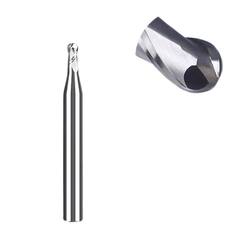 De 2.5mm x 7.5mm tweesnijdige bolpuntfrees Makera Carvera is een gereedschap ontworpen voor 3D-oppervlaktebewerking, gebogen contouren en complexe geometrieën op metalen onderdelen. Het ontwerp met twee sneden vergemakkelijkt de spanenafvoer en behoudt goede oppervlakteafwerking.