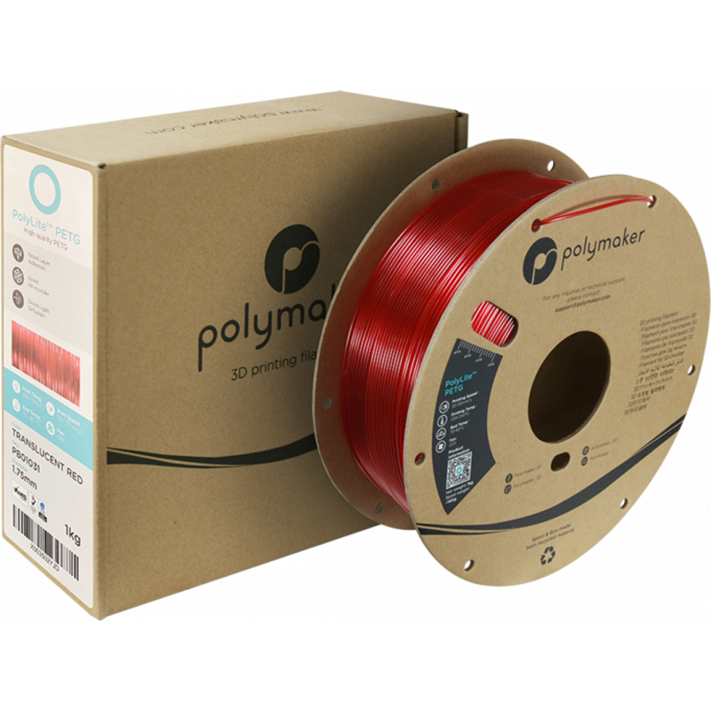 Polymaker PolyLite PETG Doorzichtig Rood is een hoogwaardig PETG dat een uitstekende balans biedt tussen printgemak en mechanische eigenschappen, en ligt tussen PLA en ABS in.