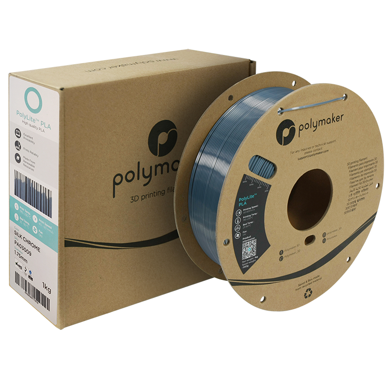 Het PolyLite PLA Silk Chroom filament is een type PLA dat een glanzende Silk-afwerking biedt.