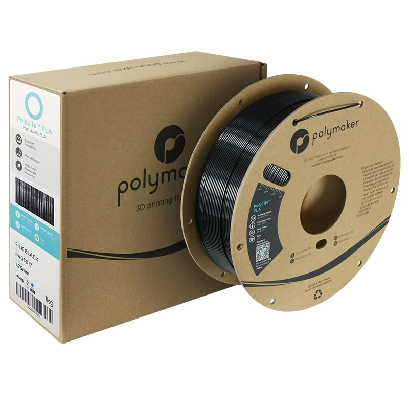 PolyLite Silk PLA Zwart is een glanzend PLA-filament met een satijnachtig en zijdezacht effect. Dankzij het unieke uiterlijk en de eenvoudige verwerking is het ideaal voor figurines en decoratieve objecten.
