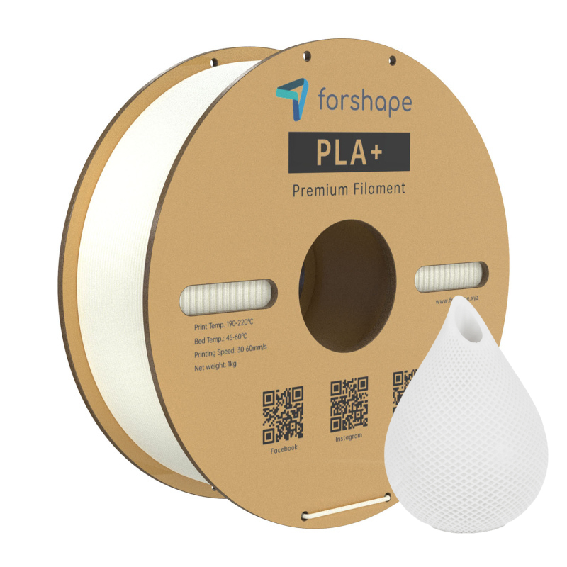 Met het Forshape PLA+ Wit filament kun je een zeer breed scala aan onderdelen printen. PLA is het meest gebruikte 3D-printmateriaal en de glanzende uitstraling geeft een fraaie afwerking.