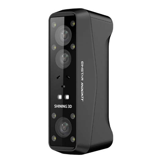 De Einstar Rockit is een draagbare 3D-scanner van de nieuwe generatie, ontworpen om mobiliteit en precisie te combineren. Uitgerust met twee modi – blauwe laser en VCSEL-infrarood – biedt hij snelle en gedetailleerde scans, zelfs buitenshuis dankzij de ingebouwde batterij en draadloze verbinding.