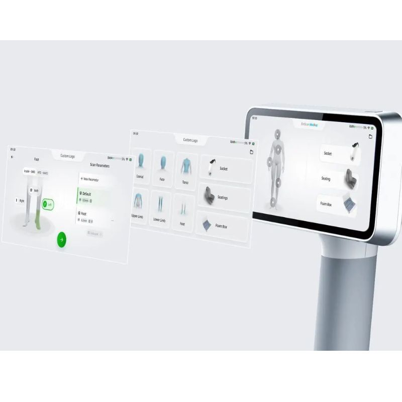 De ingebouwde software begeleidt de gebruiker stap voor stap van scannen tot dataverwerking en export. STL-, OBJ- of PLY-bestanden zijn klaar voor CAD/CAM, waardoor integratie in het ontwerpproces van ortheses en protheses eenvoudig is.