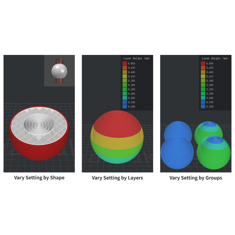 Utilisez l'un des puissants outils d'ideaMaker pour optimiser les paramètres des régions désignées malgré le réglage global. Les utilisateurs ont la possibilité de décider de l'étendue de la région. Cela permet des applications avancées telles que l'amélioration des performances mécaniques d'une pièce imprimée en 3D.