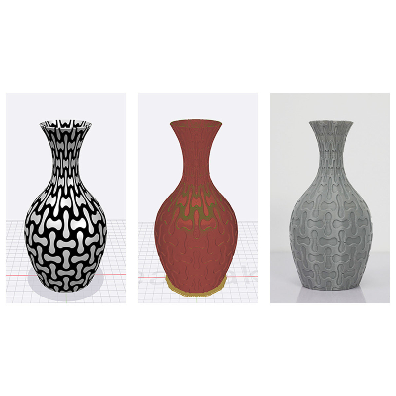 Avec ideaMaker Texture, les utilisateurs peuvent facilement créer différentes versions d'un même modèle STL en appliquant différents motifs à la surface du modèle sélectionné. Cela fonctionne en créant une surface concave ou convexe sur le modèle désigné en fonction des valeurs de l'échelle de gris d'une image.