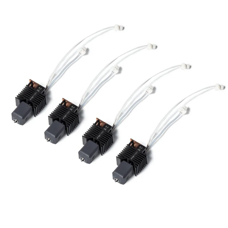 Deze set van vier 0,2 mm gehard stalen hotends biedt maximale precisie voor Snapmaker U1 prints die fijne details vereisen. Elk hotend combineert nozzle, verwarmingsblok en verwarmingselement in één geïntegreerde unit voor eenvoudige en betrouwbare vervanging.