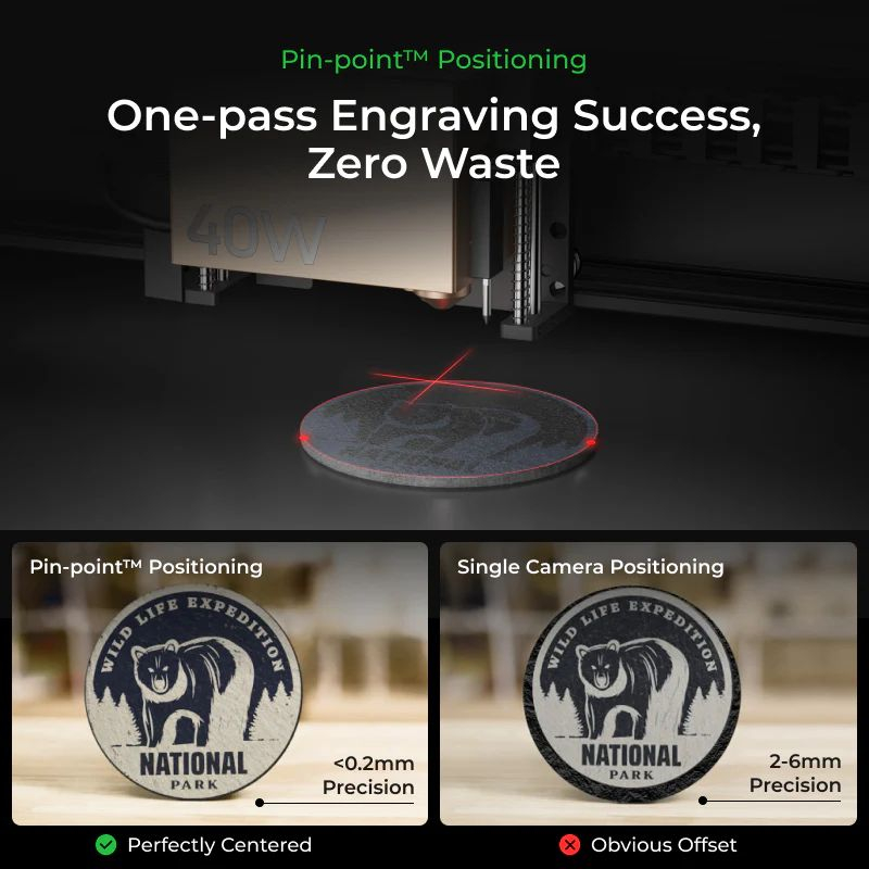 De xTool S1 gebruikt een nieuwe encoder in combinatie met algoritmes om een volledige scènekaart te maken, zo nauwkeurig als een coördinatensysteem. De positie van de laserkop wordt in realtime weergegeven in de software, wat zorgt voor een perfecte synchronisatie tussen de fysieke en virtuele wereld.