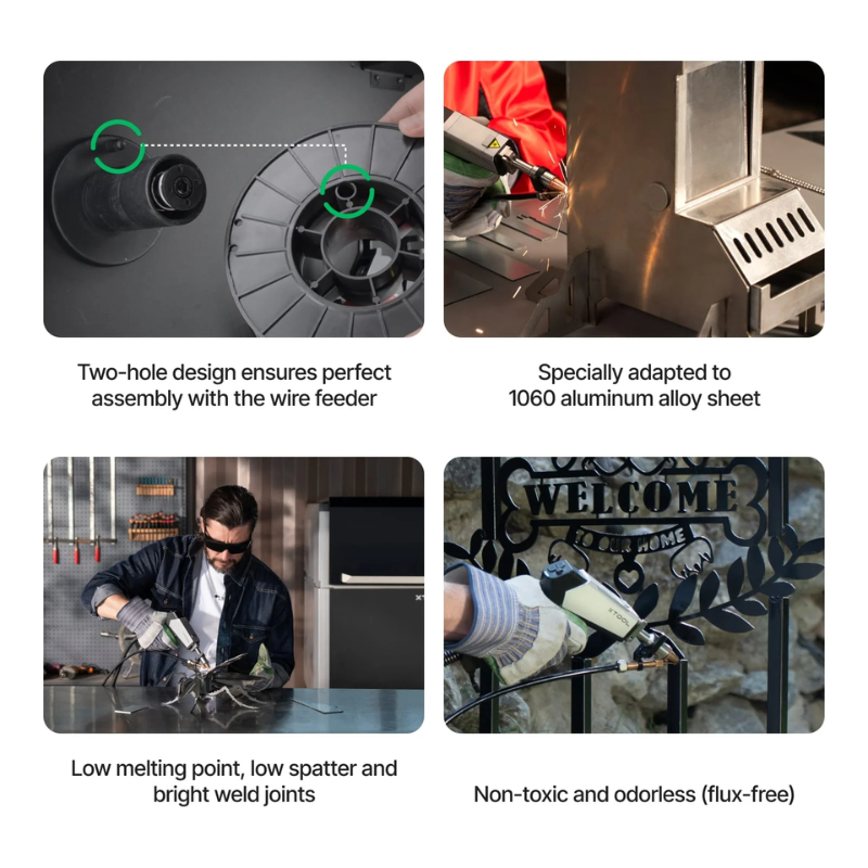 Voornamelijk gebruikt in mechanische industrie, lucht- en ruimtevaart en structuuronderdelenproductie, biedt deze 6061 legering optimale compatibiliteit met xTool laserlassystemen en minimaliseert het risico op scheuren en porositeit. De 1,2 mm diameter zorgt voor een regelmatige draadtoevoer, waardoor precieze controle over warmte en materiaalafzetting mogelijk is.